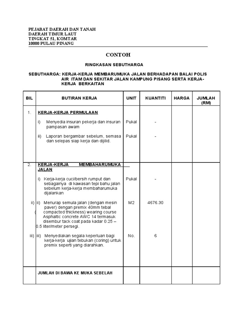 Sebut Harga Cadangan Membaiki Dan Menurap Semula Jalan Portal Rasmi Majlis Perbandaran Jempol Mpjl
